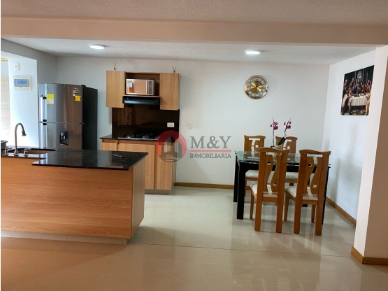 de 74 metros, cuenta con 2 habitación, 2 baño con ducha, sala comedor cocina equipada, lavadora terraza, ubicado en edificio completo con GYM, piscina, cancha de futbol, parque infantil, vigilancia 24 horas. Parqueadero.
